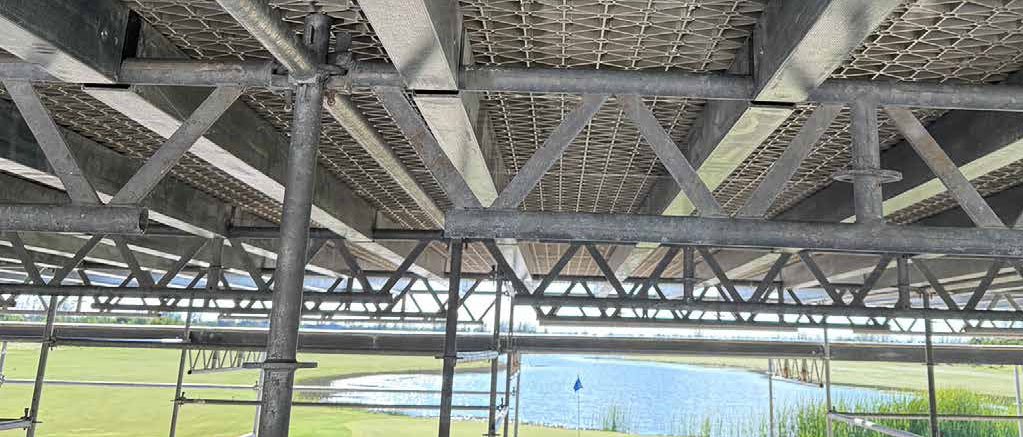 Elevated heavy-duty decking. Larger 4’×8′ panels on FRP beams for scaffold platforms and structures.